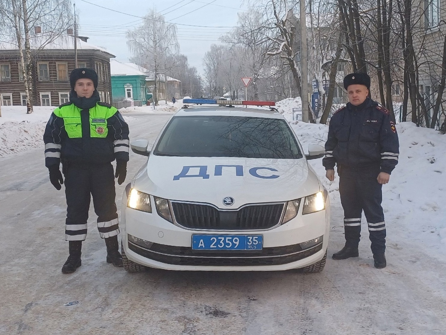 Автоинспекторы выяснили, что у машины разрядился аккумулятор, а также имеются неисправности генератора. С помощью патрульного автомобиля и пусковых проводов полицейские завели двигатель иномарки, чтобы путешественники смогли обогреться. Через некоторое время за семьёй приехали родственники из Тотьмы. Поблагодарив сотрудников за помощь, гости города продолжили путь в сопровождении родни.
