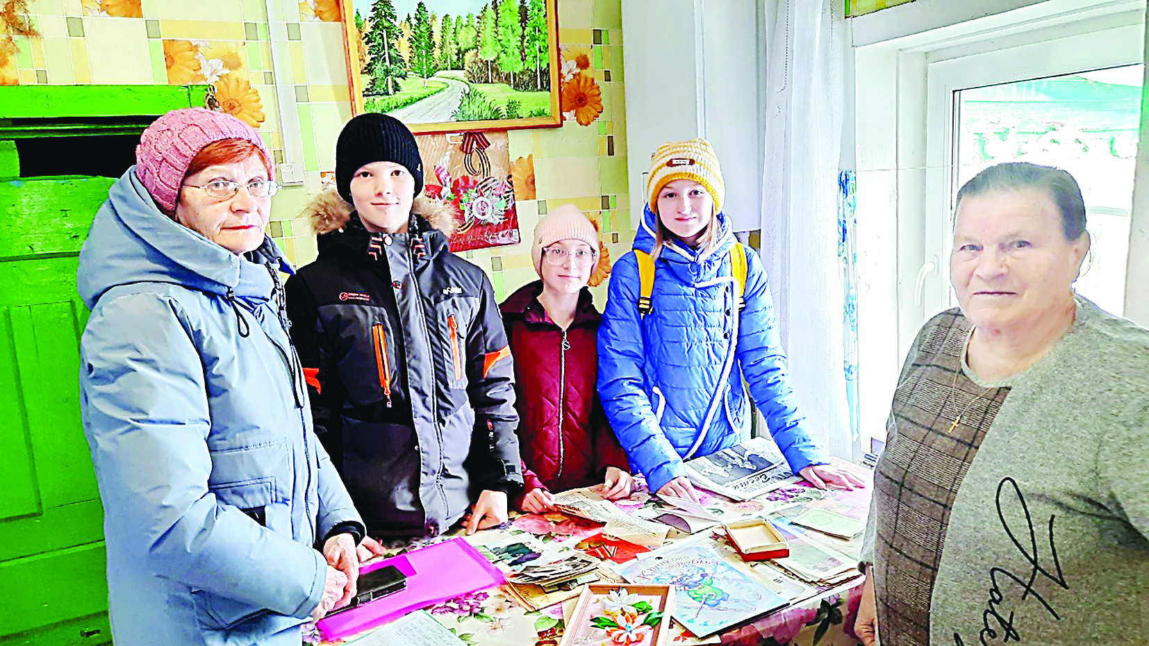 В рамках проекта, Татьяна Новоселова и Ольга Акентьева вместе с учениками 5 и 9 классов «Никольской ООШ имени Николая Рубцова» посетили дома Нины Шестаковой и Любови Антуфьевой – жительниц села Никольское. Детство этих женщин опалено пламенем войны и закалено тяжким послевоенным временем. Заворожённые, школьники внимали рассказам о нелегкой доле детей войны, сравнивая их заботы со своими. Разглядывая награды Любови Сергеевны, пятиклассники изумлялись: