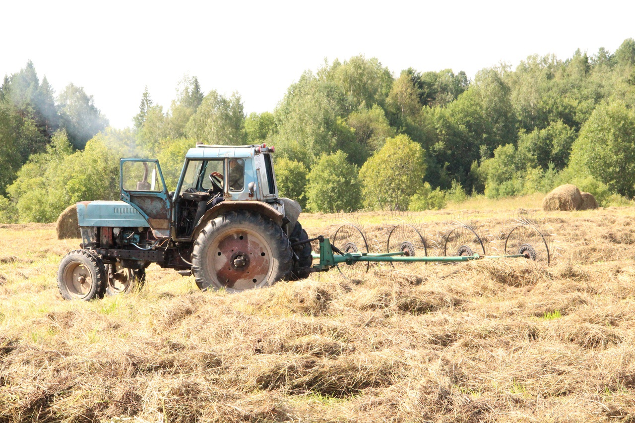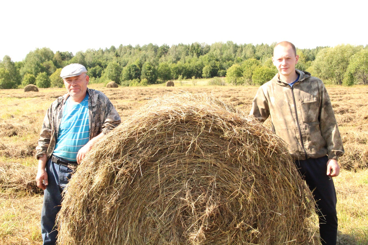 Купили у местных сельхозпредприятий бывшие в употреблении косилку и сеноподборщик, подремонтировали, наладили. На поле управились с двумя старенькими тракторами: к одному прицепили рулонный пресс, к другому — грабли.