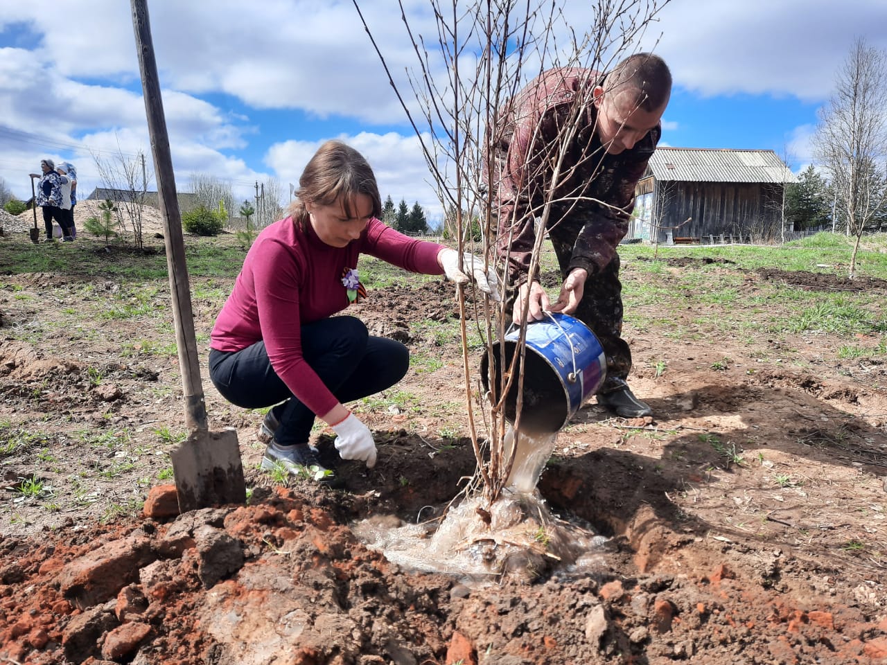 Так как деревья необходимо сразу сажать в землю, глава территории обратился к старосте Алексею Телицыну и председателю совета ветеранов Нине Дудиной, чтоб организовали субботник со всеми карантинными требованиями: малыми группами, с соблюдением дистанции. Труженики обрадовались, когда увидели, сколько людей выразило готовность помочь! Приходили парами, семьями, по одному. В общей сложности участвовало более сорока жителей села. Люди работали с желанием, интересом: каждый в душе знал, что делает для себя, детей, односельчан.
