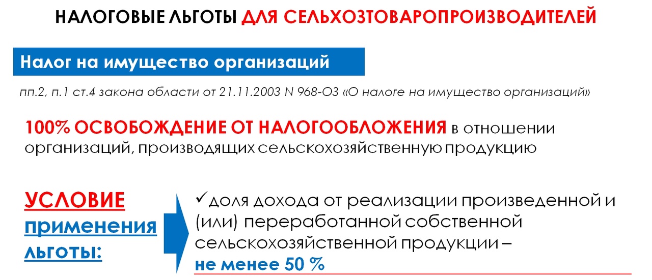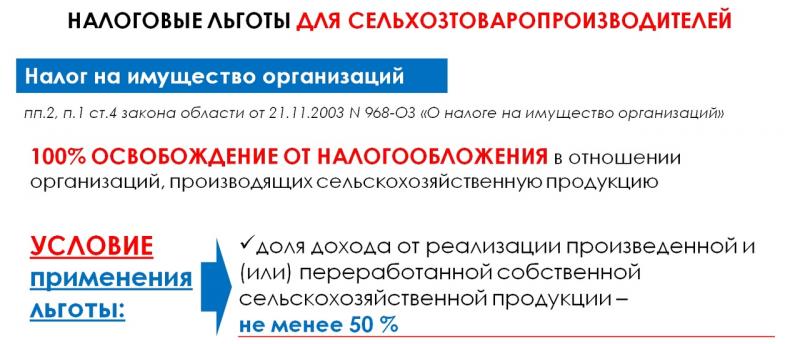 В инфокарточках представлена информация о налоговых льготах для сельхозтоваропроизводителей.