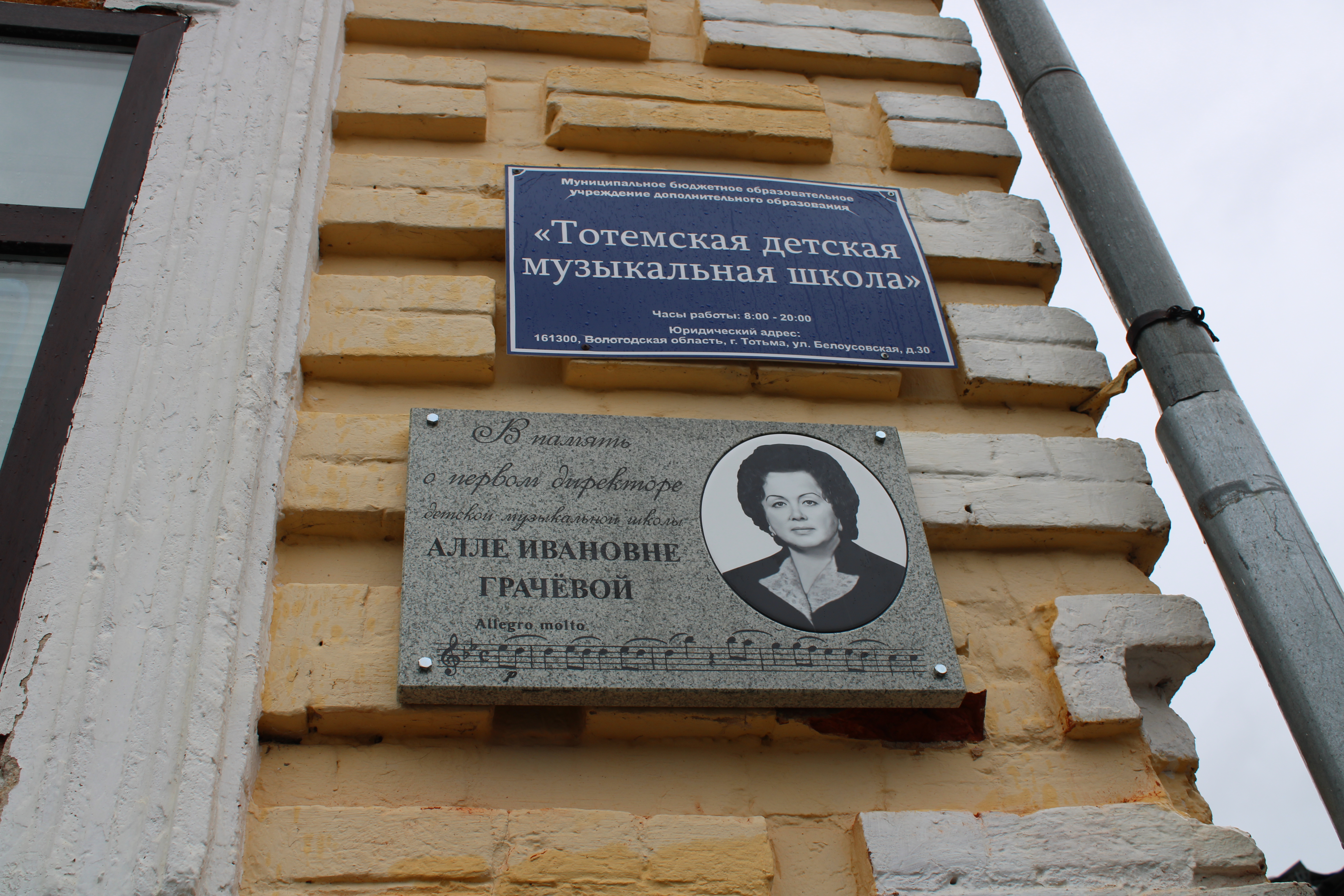 Этому предшествовала встреча неравнодушных земляков, коллектива Тотемской ДМШ и воспитанников Аллы Ивановны в стенах учебного заведения. Выступавшие в один голос говорили о том, какой выдающейся личностью была Алла Грачёва: обладала феноменальной памятью, любила музыку и приобщала к искусству окружающих, бесплатно занималась с детьми, которые тянулись к музицированию, но не могли в силу каких-то причин поступить ы ДМШ, вовлекала в занятия творчеством взрослых, в общем, несла доброе и светлое всем и вся.