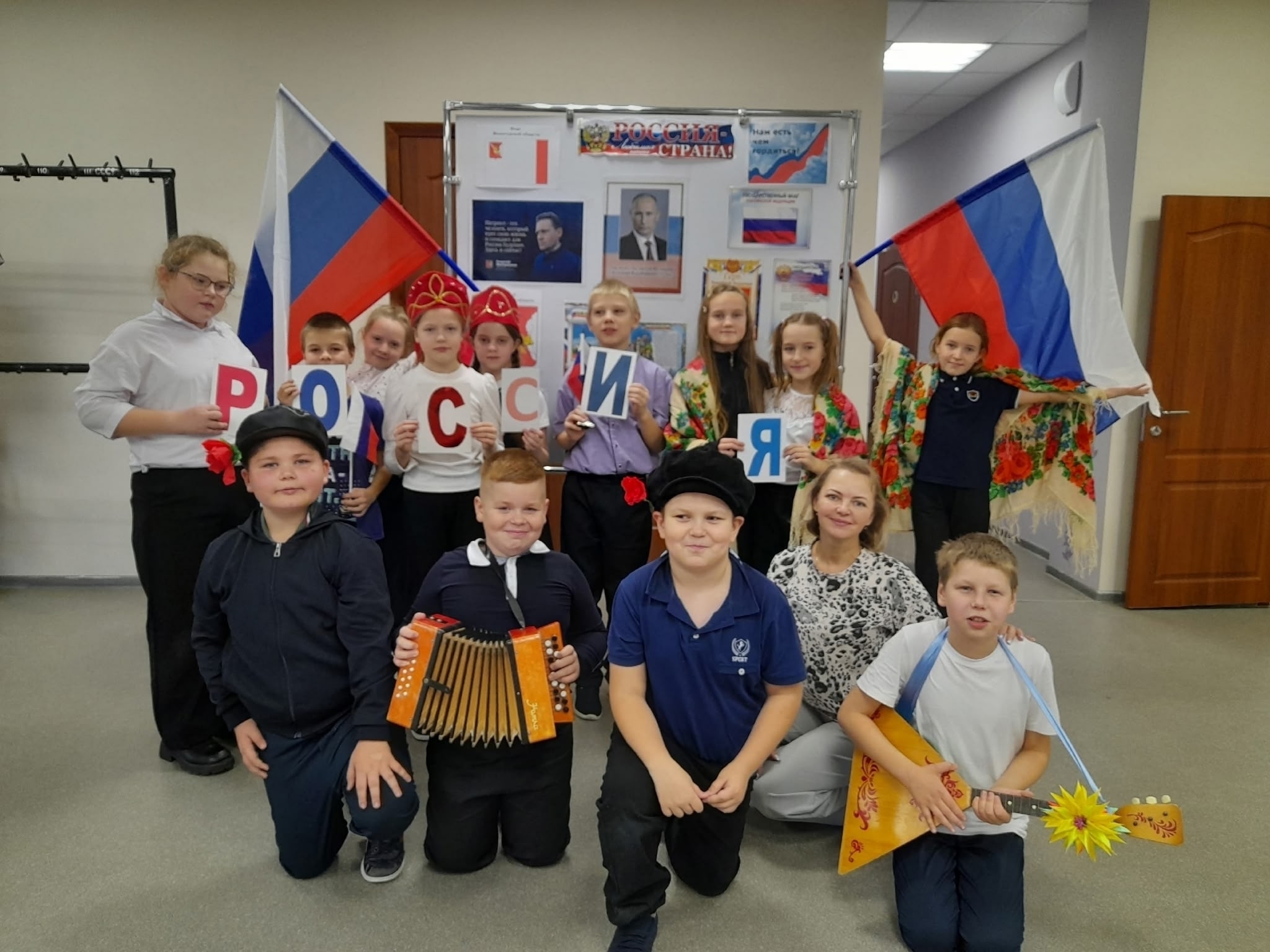 Несмотря на проливной дождь, который лишь добавил участникам азарта, зажигательно прошёл флешмоб под песню в исполнении Анастасии Кириловской. Вместе со специалистами Дома традиций и ремёсел «Морошка» дети и взрослые оставили разноцветные отпечатки ладоней на огромном полотне, создав яркое и узнаваемое изображение флага России.