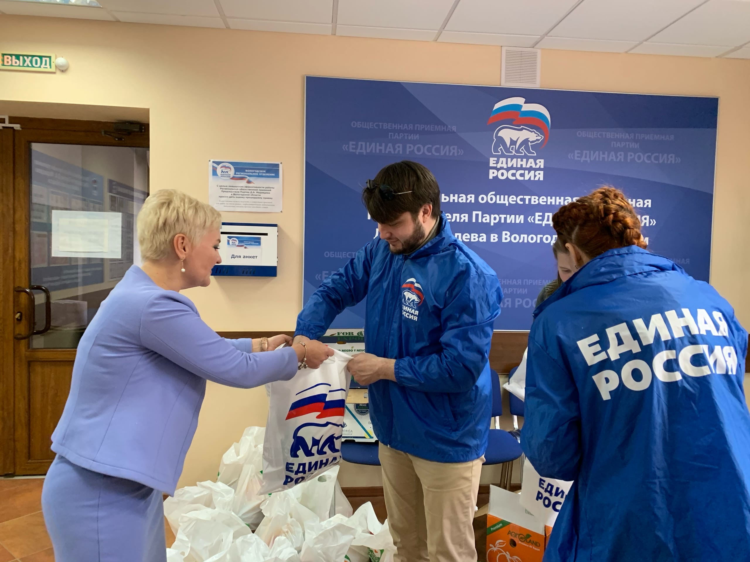 Добровольцы доставляют продуктовые наборы нуждающимся в этом людям, средства индивидуальной защиты и аппараты ИВЛ в больницы. В рамках акции «Спасибо врачам» в больницы по всей стране передано 200 автомобилей. Совместно с одной из торговых сетей «Единая Россия» доставила 360 тысяч чайных наборов медработникам, которые работают в «красной зоне». Партия передала в регионы несколько миллионов масок. Часть средств индивидуальной защиты предоставил крупный онлайн-ритейлер.