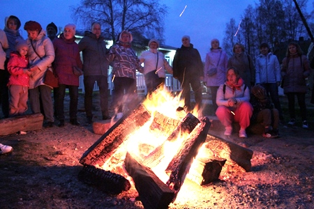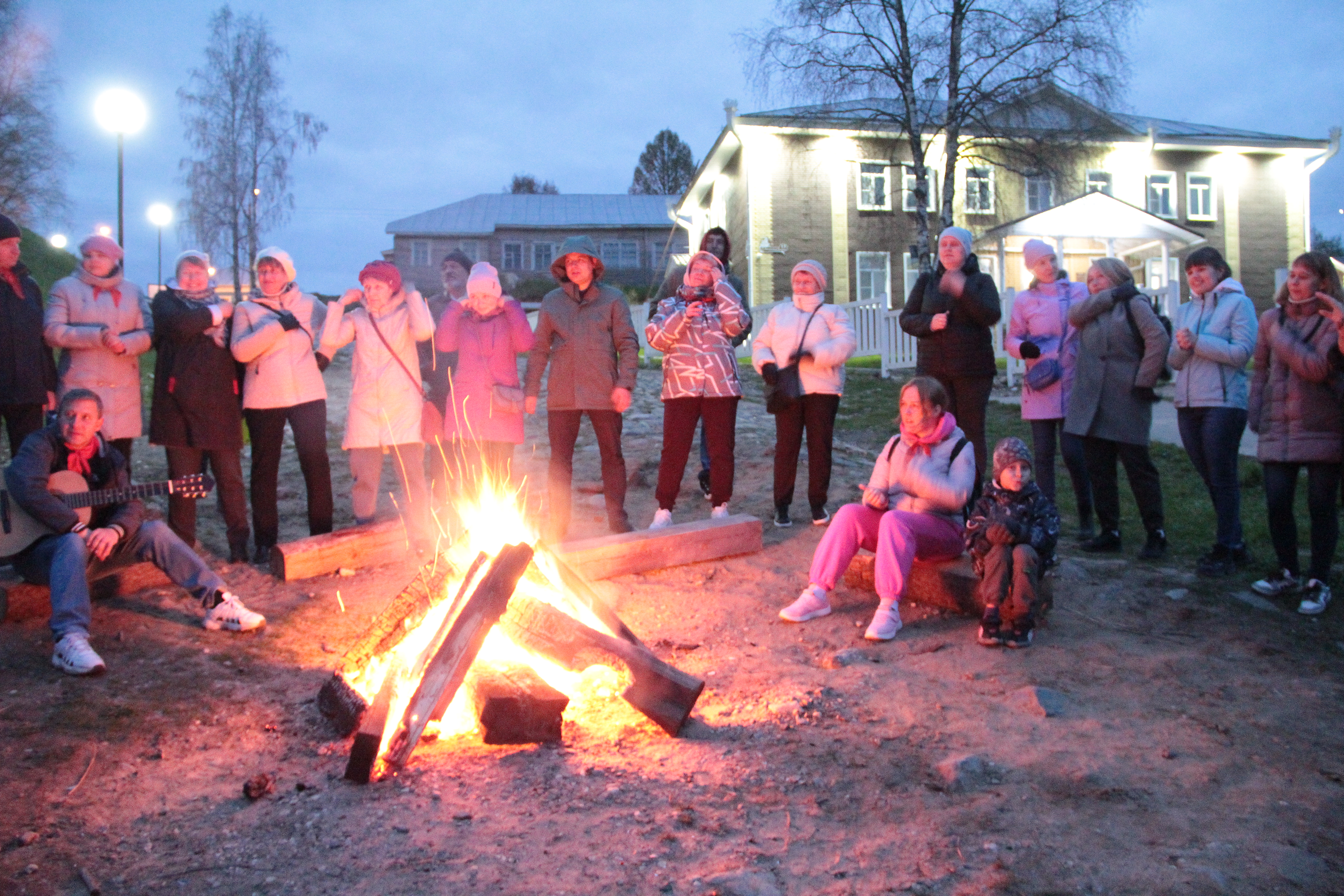 И если уж до конца придерживаться темы нави, то избавиться от всего таинственного и непонятного помогает огонь, который очищает и согревает. На протяжении всей музейной ночи таким приютом для гостей служил пионерский костёр, который помогли провести активисты общественной организации «Застава Тотьма». Здесь хоть верьте, хоть не верьте, а с небес на землю спуститься было легко вместе с пионерскими песнями, речёвками и всеми другими эпохальными атрибутами 100-летия Всесоюзной детской организации имени Ленина. Завершило и поставило яркую точку волшебного мероприятия ещё одно огненное шоу с участием тотемских экстрималов под руководством Натальи Рэй. А окончательно прогнали всех духов колокольные звоны в исполнении Андрея Новикова.