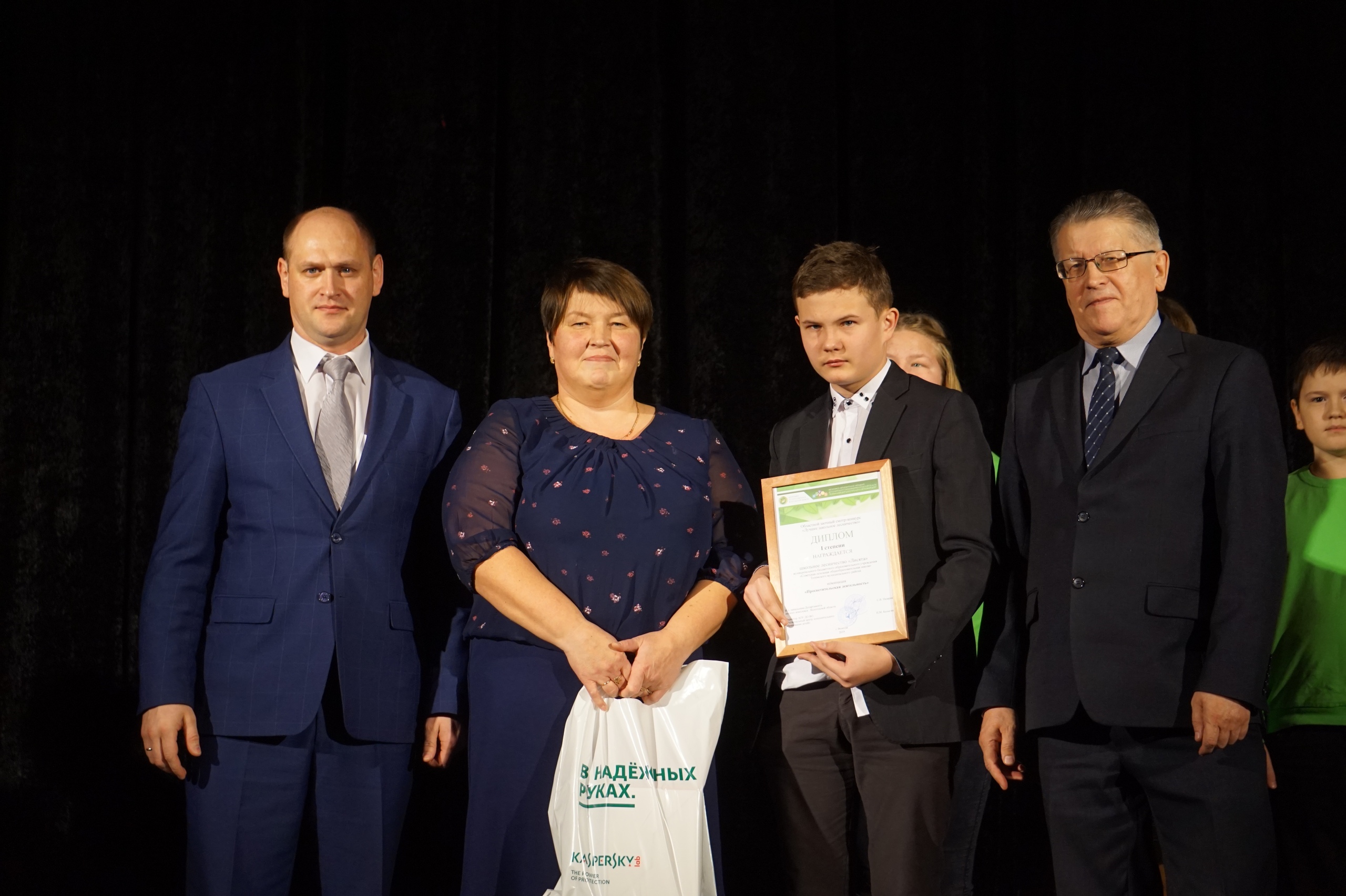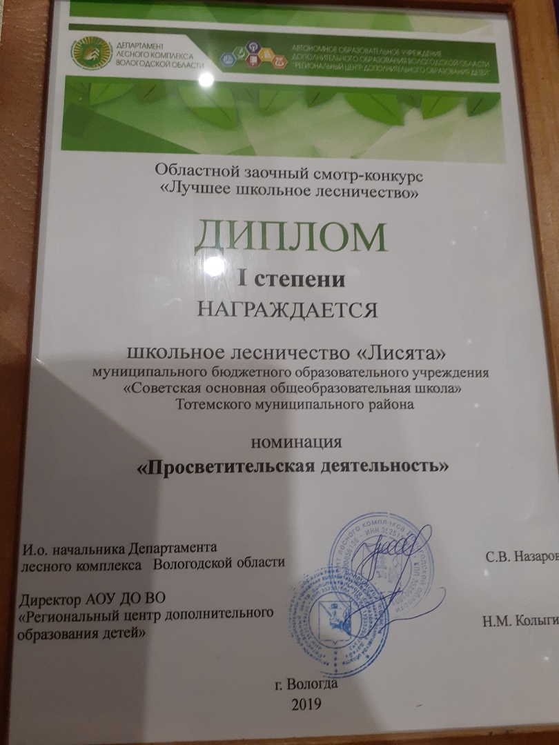 Лучшим школьным лесничеством в номинации «Просветительская деятельность» стало объединение «Лисята», работающее в Советской основной школе. Диплом первой степени и фотоаппарат в подарок победителям вручил заместитель начальника департамента лесного комплекса Сергей Назаров на церемонии открытия ещё одного юниорского состязания.