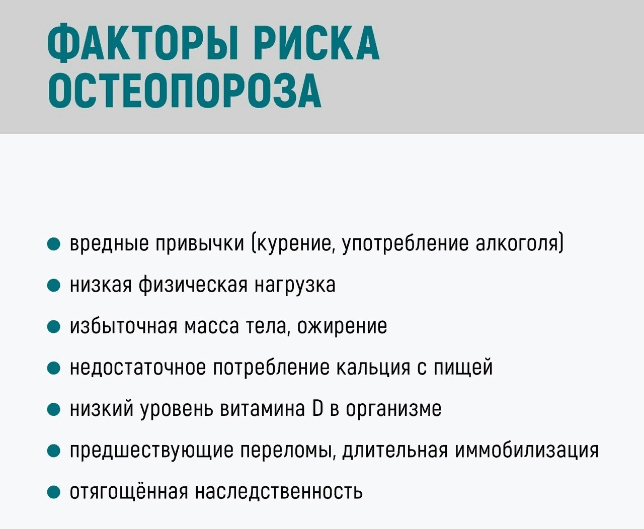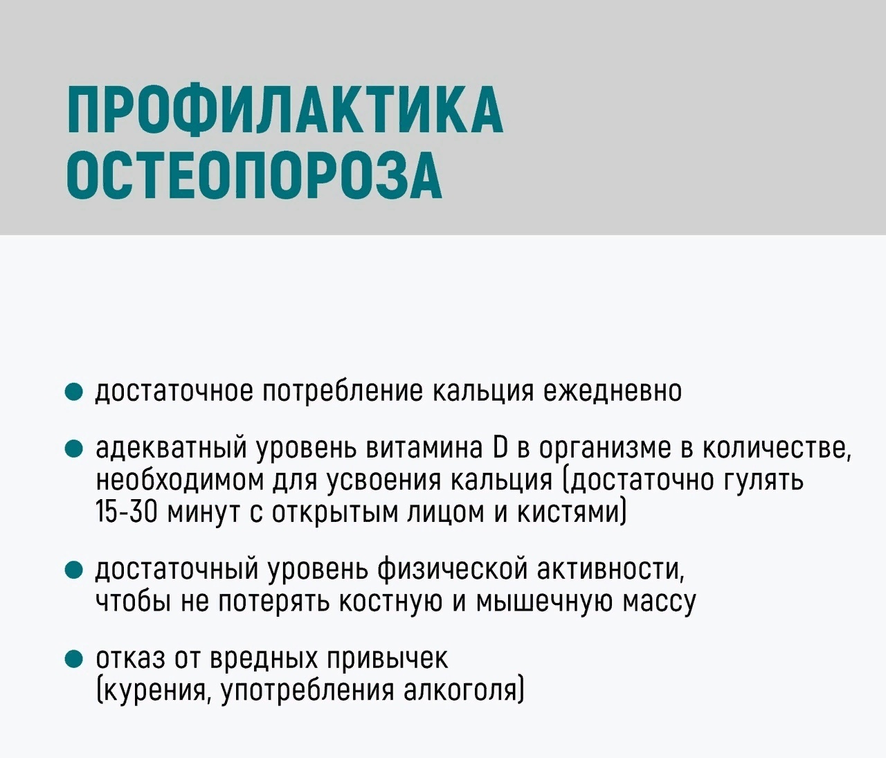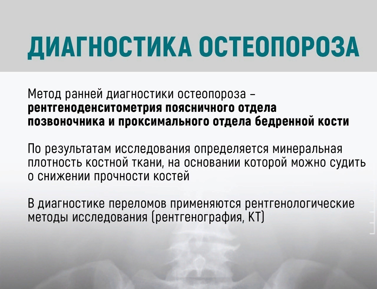 - Остеопороз называют «молчаливым заболеванием», потому что с годами оно может не проявлять себя, – рассказал начальник Департамента здравоохранения области Алексей Плотников. - Для профилактики развития остеопороза специалисты рекомендуют обсудить с врачом факторы риска и комплекс необходимых обследований. Скорректировать уровень витамина Д при его дефиците, согласовать со специалистом профилактическую дозу витамина Д3, употреблять продукты питания, содержащие кальций. При его дефиците риск остеопороза повышен. Иметь достаточную физическую активность, чтобы не потерять костную и мышечную массу.