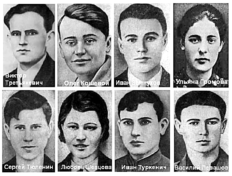 «Молодую гвардию» включили в школьную программу, и не было ни одного советского ученика, который не слышал бы об Олеге Кошевом, Любе Шевцовой и Ульяне Громовой. Но на слуху тогда были лишь несколько фамилий самых активных участников, и у многих складывалось ощущение, что вся организация из них и состояла. На самом деле в неё входило более 70 краснодонцев, самому младшему из которых едва исполнилось 14, а большинство были восемнадцатилетними. Поначалу подпольные группы в городе складывались стихийно, но 30 сентября по предложению одного из самых активных ребят, Сергея Тюленина, организация получила название «Молодая гвардия». Во главе её был штаб, куда вошли Иван Земнухов, Василий Левашов, Георгий Арутюнянц и Сергей Тюленин, комиссаром стал Виктор Третьякевич. Чуть позже туда влились Ульяна Громова, Олег Кошевой, Иван Туркенич и Любовь Шевцова.