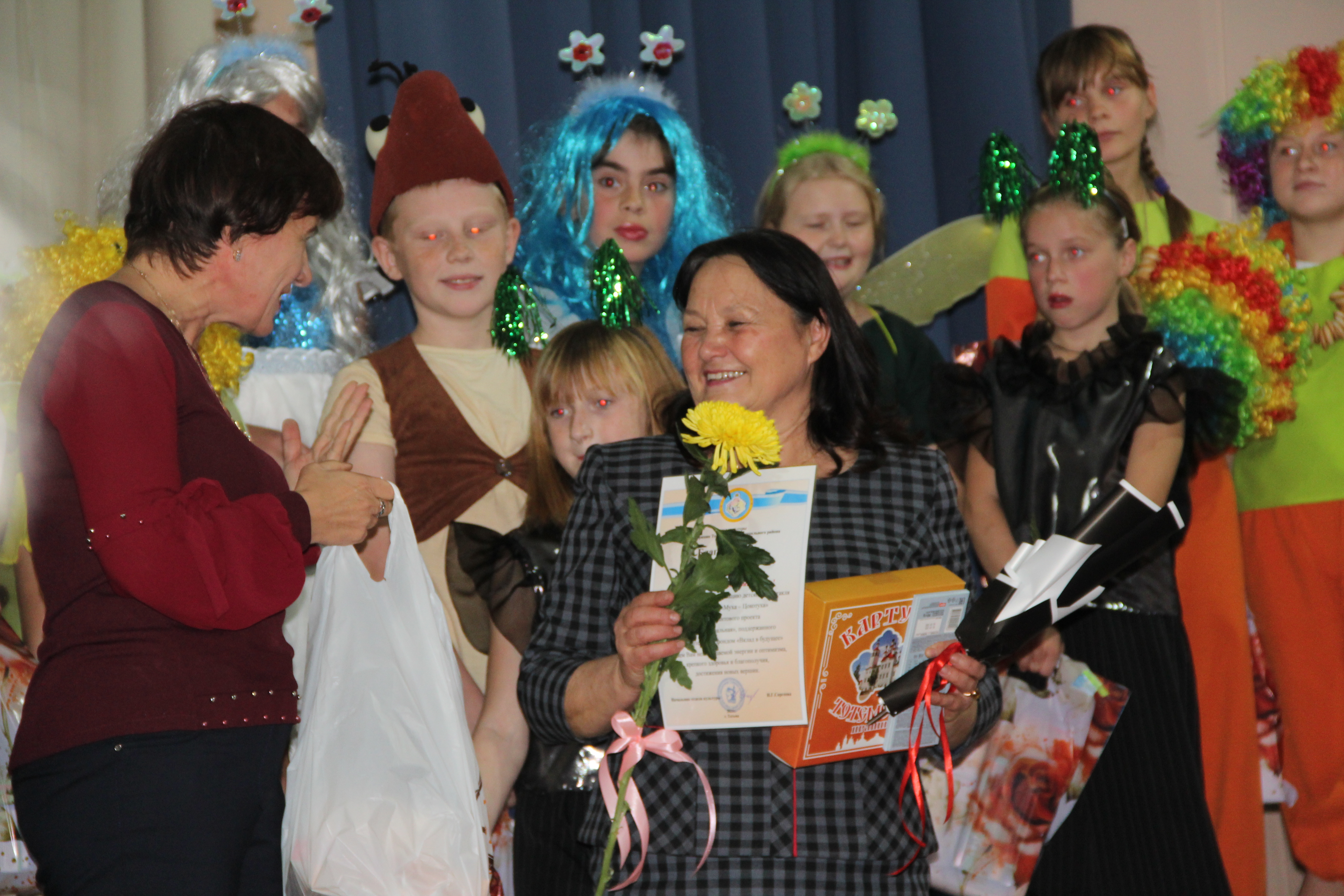 Председателю районного общества инвалидов Любови Ярославцевой, режиссёру Евгении Румянцевой и хореографу Евгении Карелиной задуманное удалось. Они доверились детям, преодолели вместе с ними все препятствия, зажгли в их душах огоньки уверенности и успеха. А главное – в себя поверили маленькие актёры.