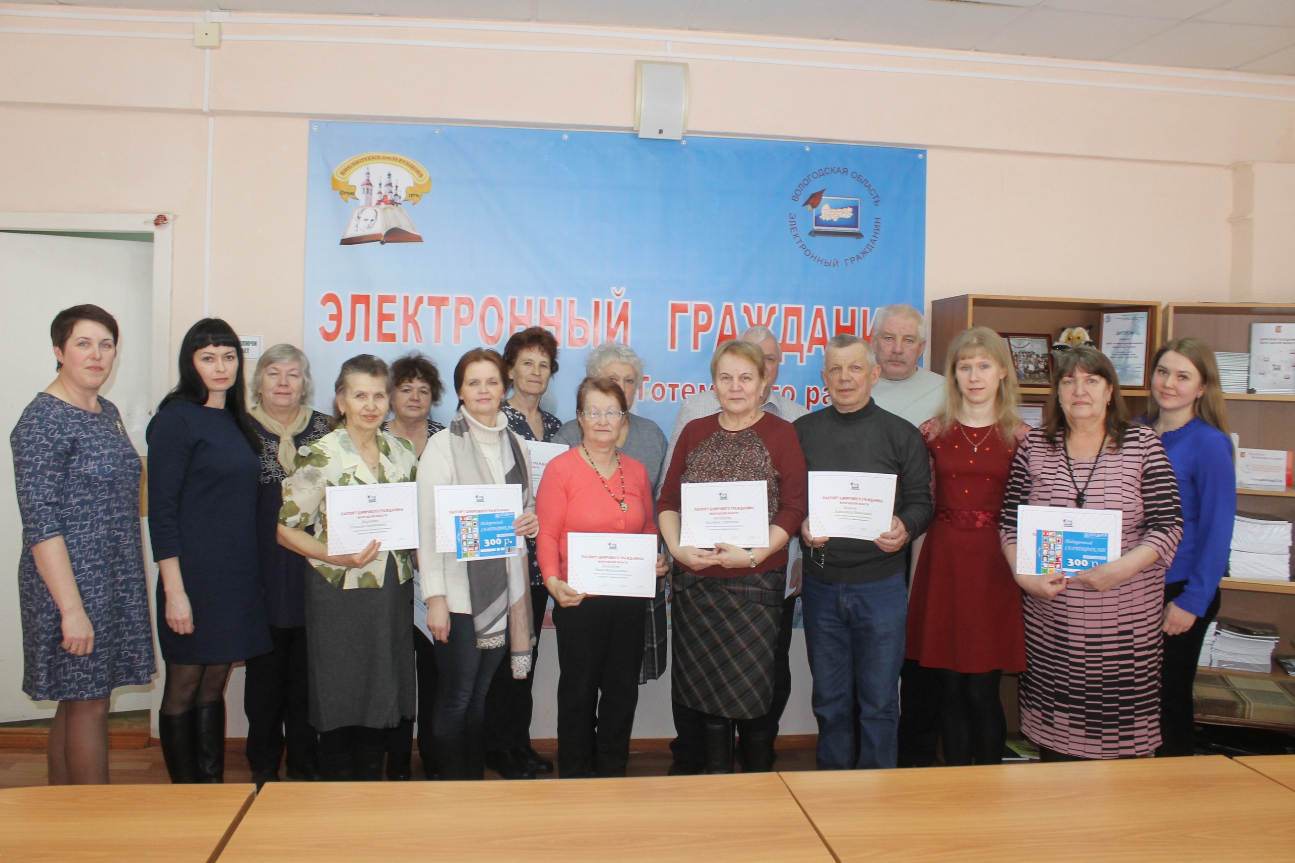 Нынче представители нашего района стали победителями в двух областных конкурсах. Елена Лазарева, заведующая Погореловским филиалом Тотемской ЦБС, признана победителем конкурса тьюторов по результатам второго семестра 2018-2019 гг. реализации регионального проекта «Электронный гражданин». Анастасия Трофимова и Зинаида Коротина стали участницами областного конкурса «Идём в цифру!». Кроме того, они представили работу слушателей курса. По его итогам команда тотьмичей победила как самый творческий центр общественного доступа и признана призёром в номинациях «Группа в социальных сетях» и «Онлайн-песня».