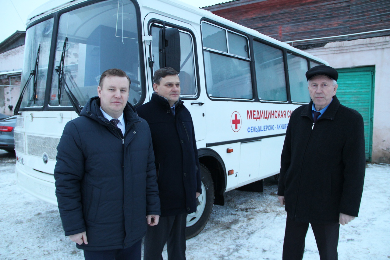 С новой техникой поспешили познакомиться глава района Сергей Селянин и руководитель городской администрации Анатолий Скорюков. Главный врач Валерий Рычков пояснил, как будет использован мобильный ФАП на базе автобуса «ПАЗ».
