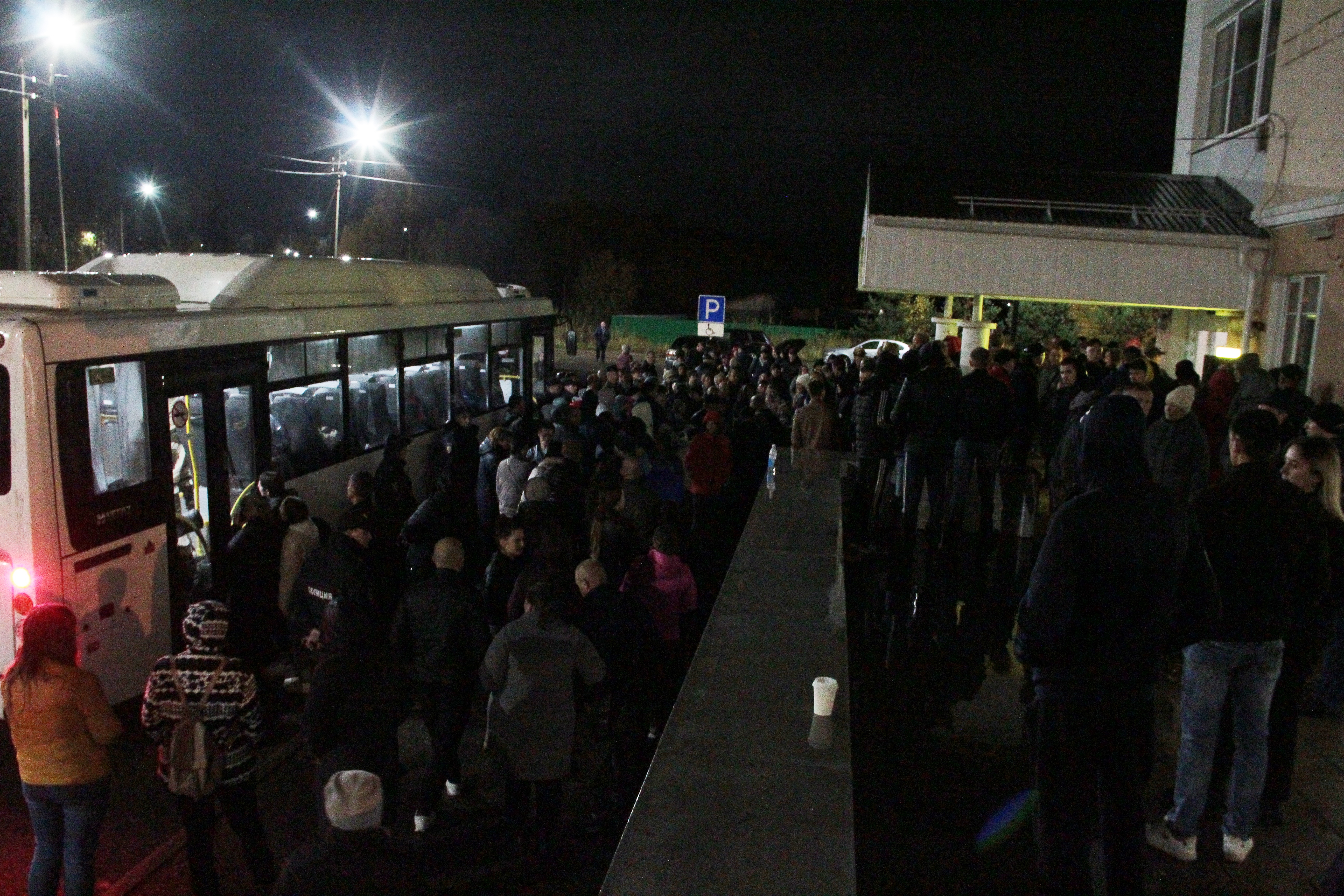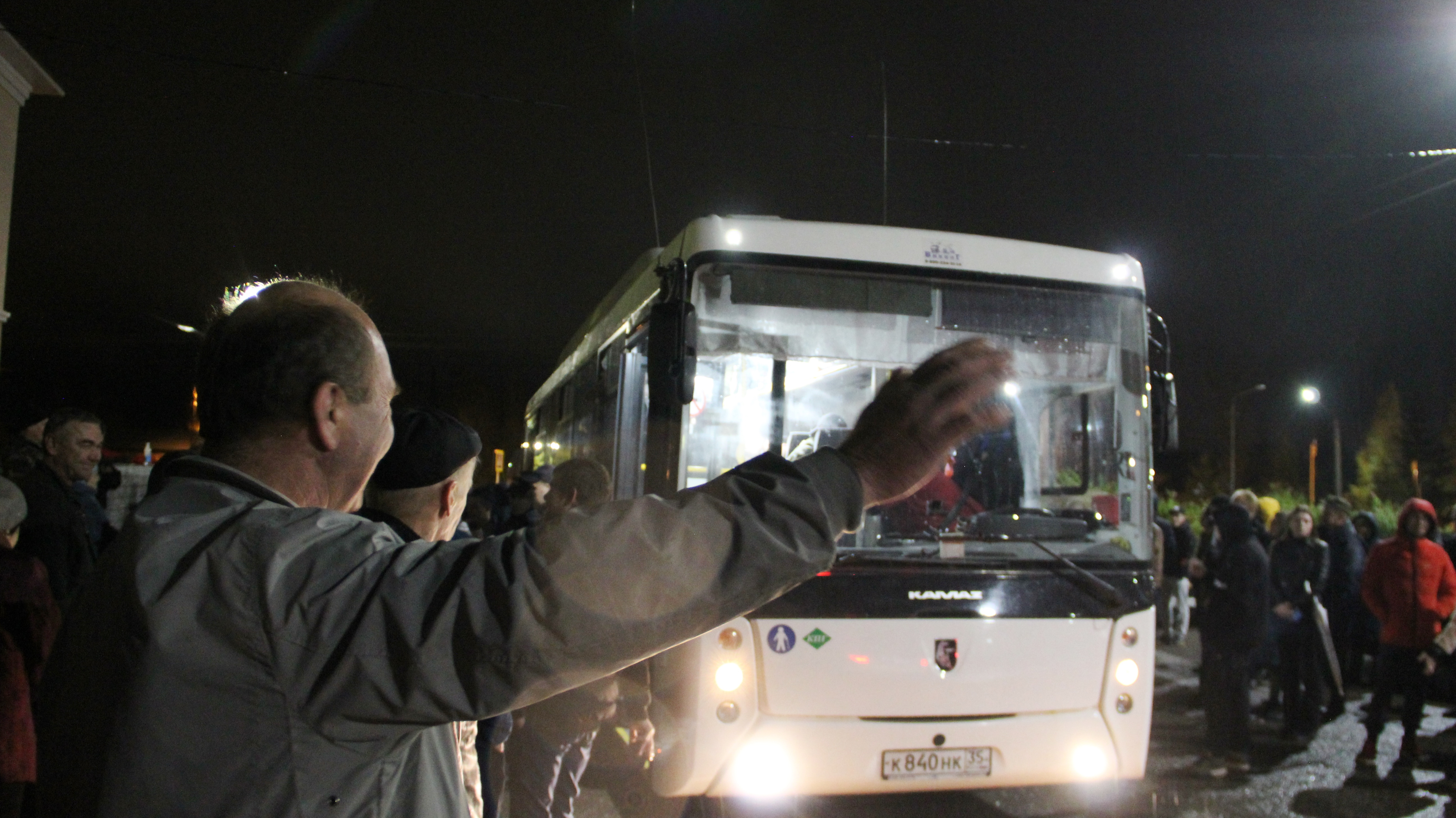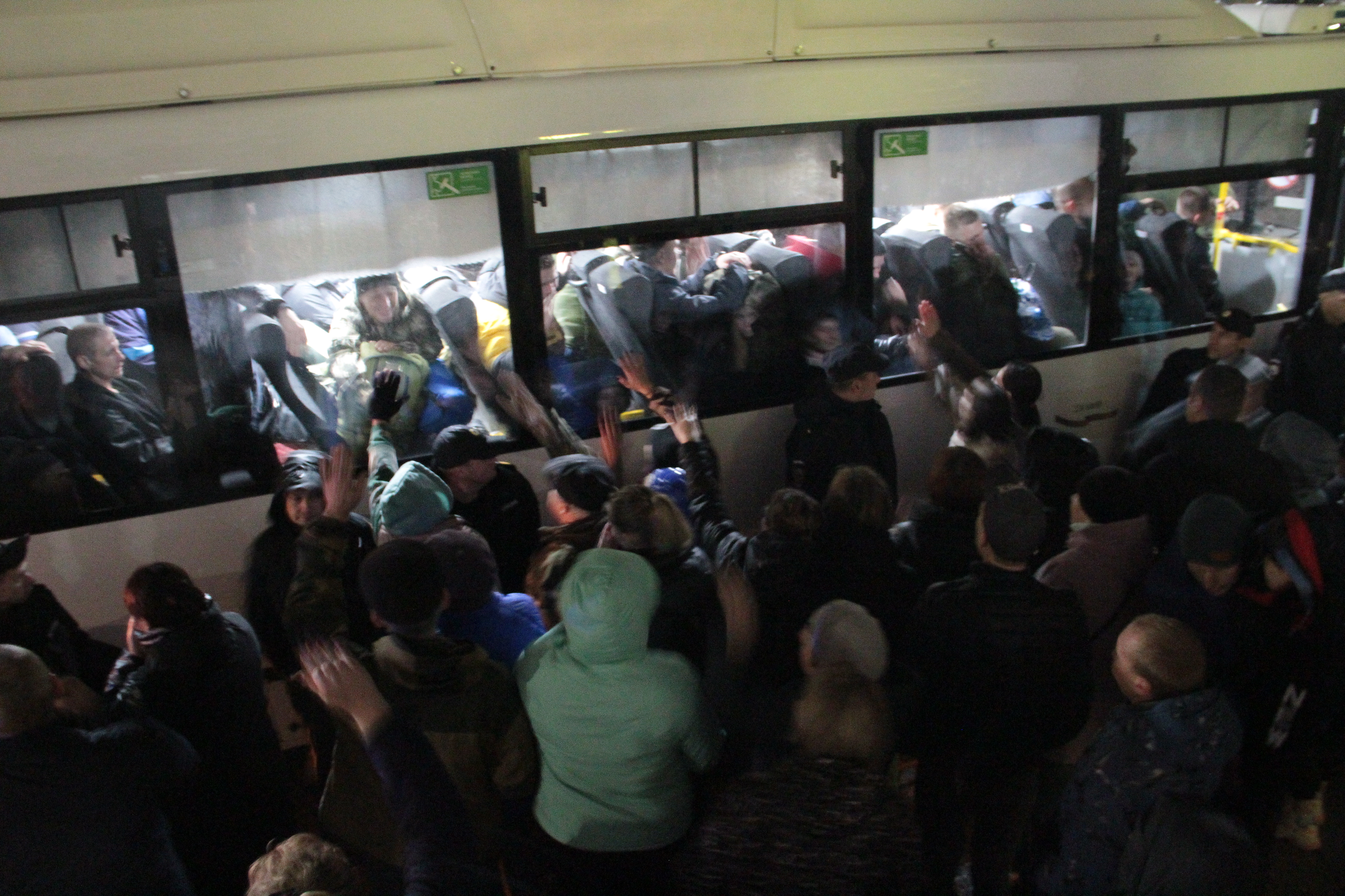 После напутственных слов, крепких объятий с родными, ждавшими несколько часов, чтобы проводить своих любимых, защитники погрузились в автобусы и под громкие аплодисменты, добрые пожелания сил и мужества направились в путь.