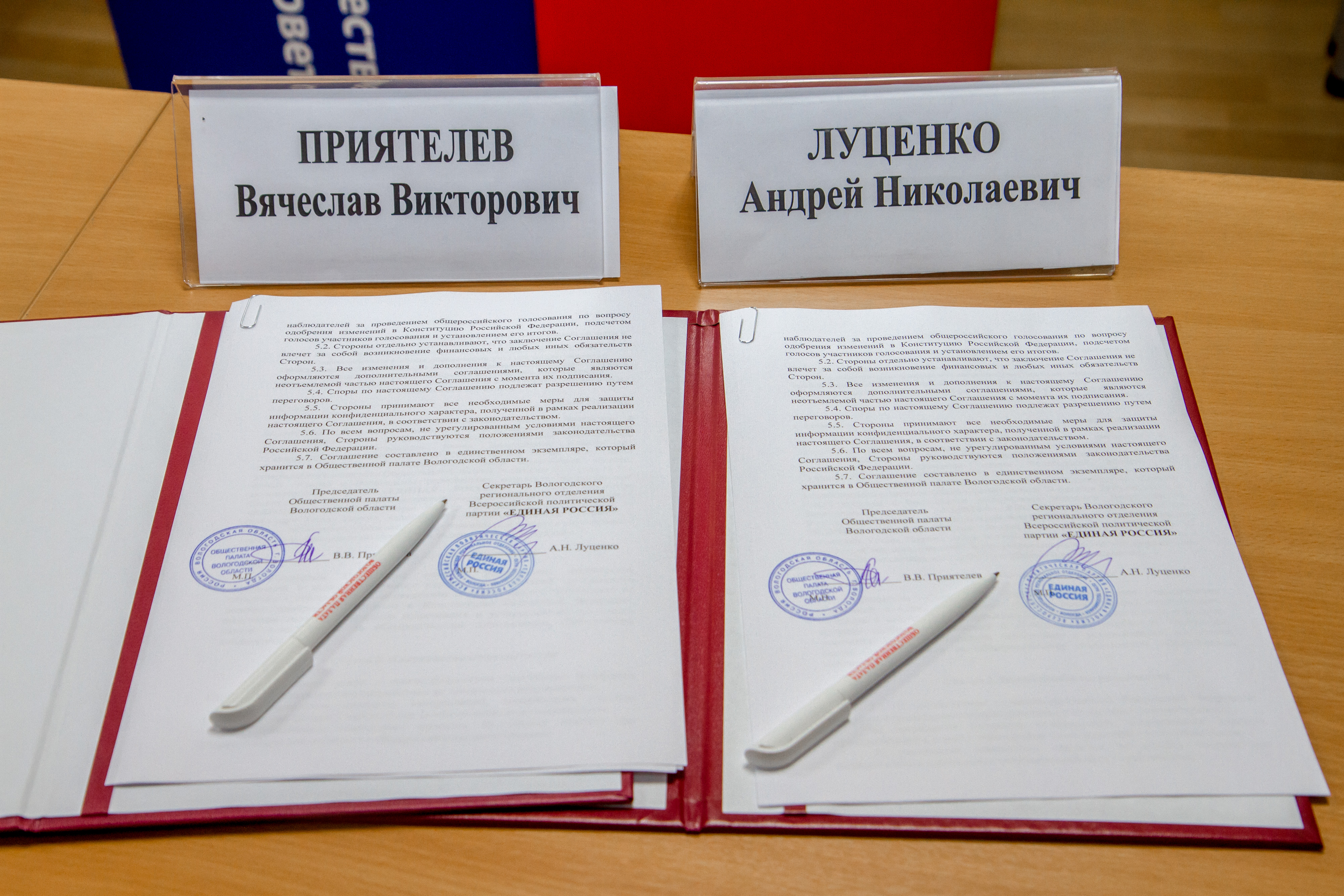 «Только что подписали соглашение с Общественной Палатой, в рамках которого партия «Единая Россия» будет принимать активное участие в предстоящем процессе голосования по поправкам в Конституцию РФ. Считаем очень важным, чтобы этот процесс проходил легитимно, открыто, чтобы ему доверяли граждане. Важно, чтобы был общественный контроль за проходящими процедурами. Поэтому, в рамках сегодняшнего соглашения, члены партии «Единая Россия» берут на себя часть функций по общественному контролю за проходящим процессом голосования», - прокомментировал секретарь Вологодского регионального отделения партии «Единая Россия» Андрей Луценко.