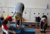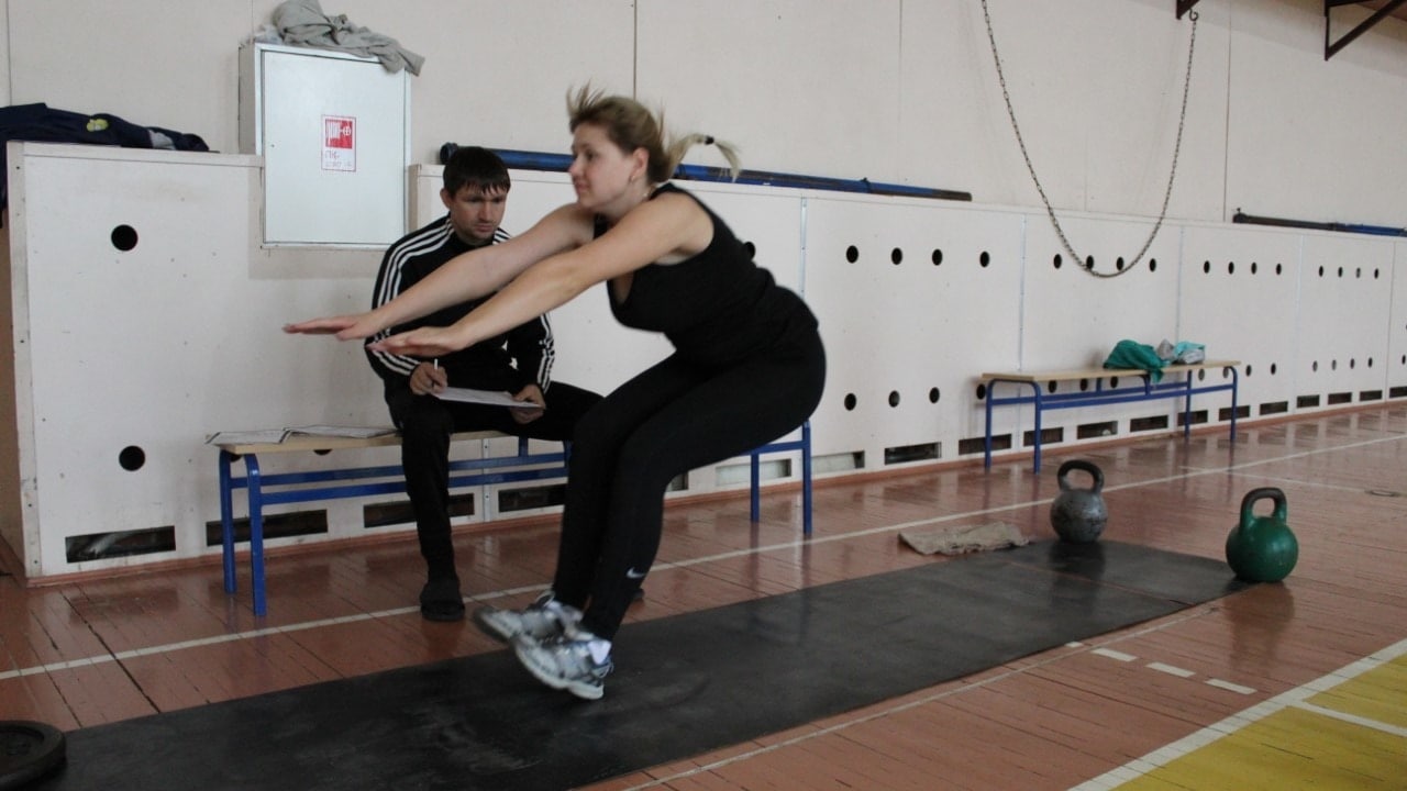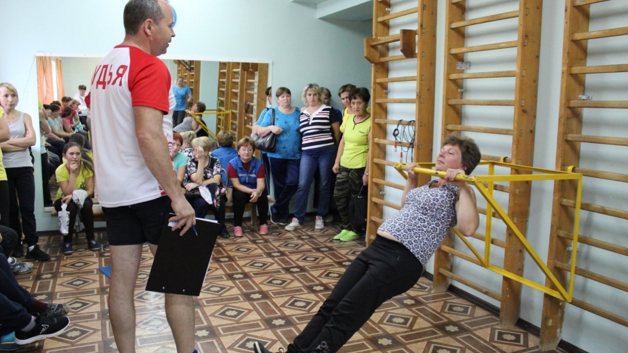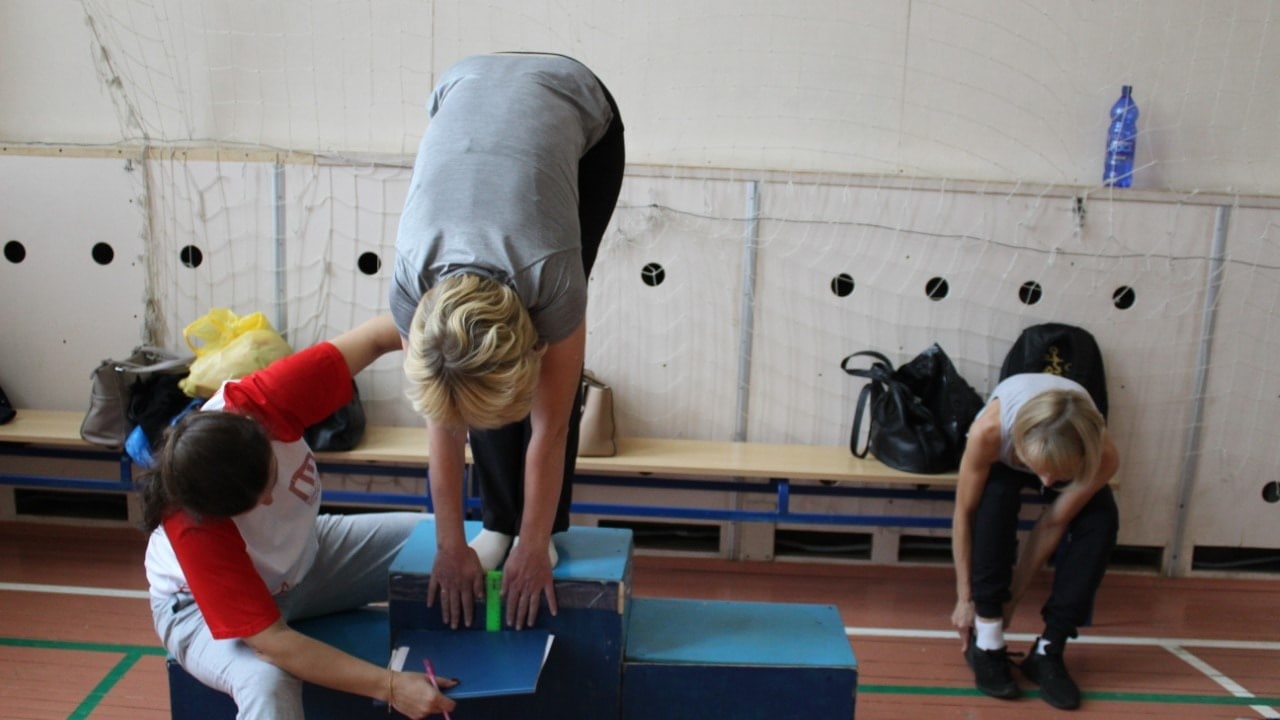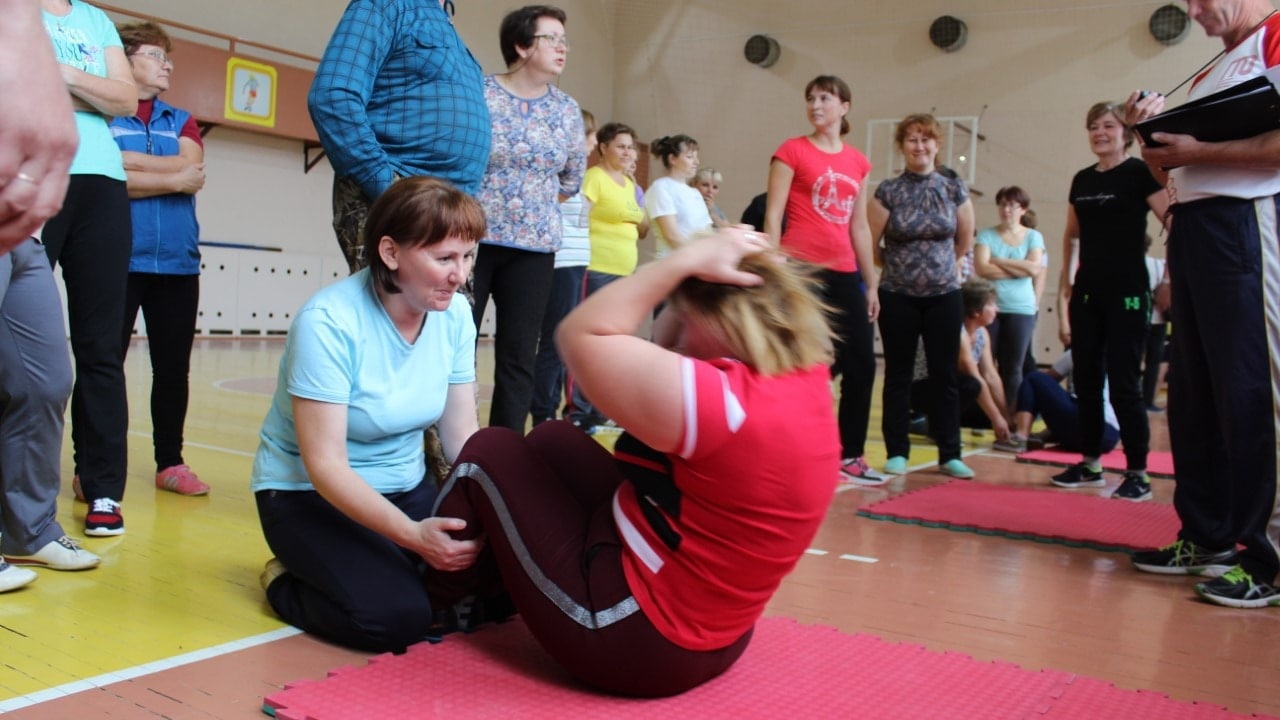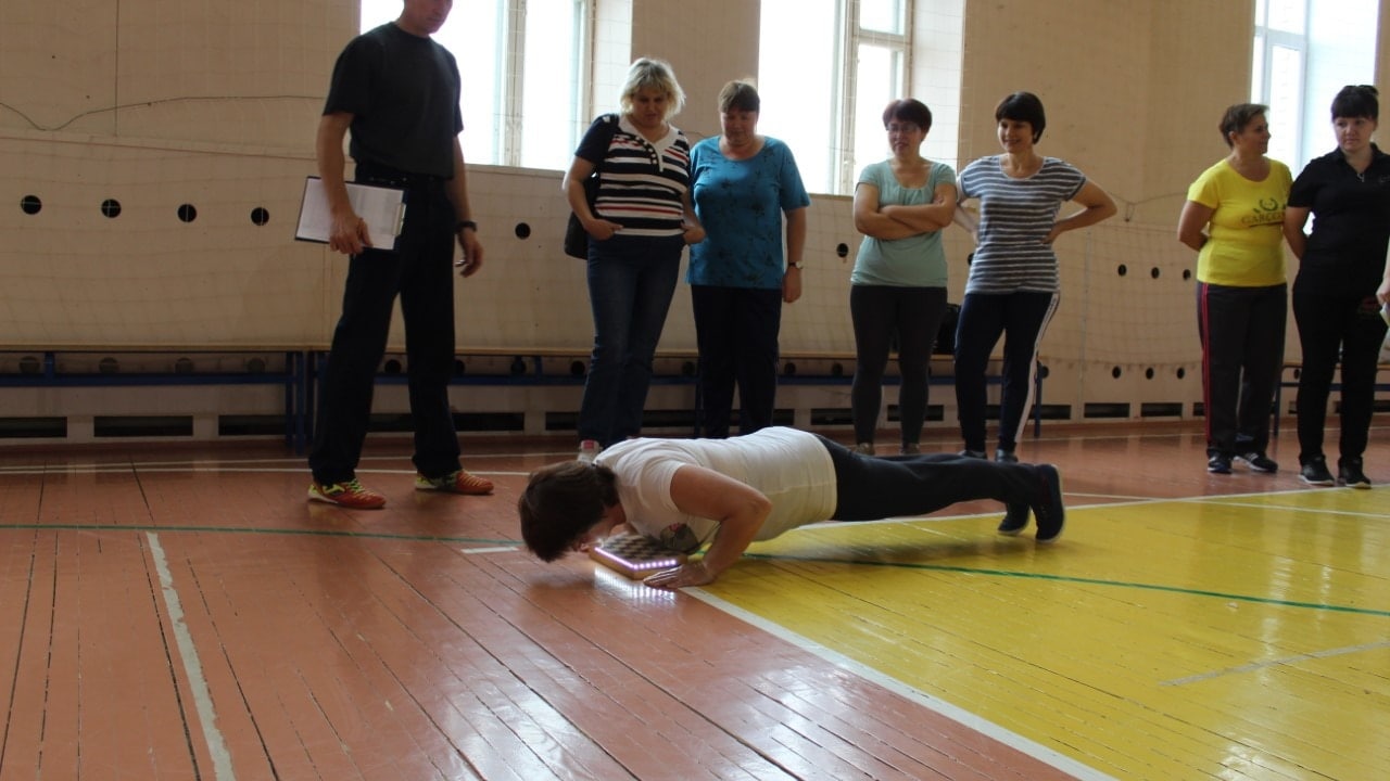 Распределившись по спортзалам, педагоги сдавали следующие испытания: