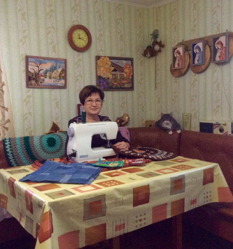 Первую работу в таком стиле тотьмичка изготовила для дачи в начале 90-ых прошлого столетия. С тех пор не расстаётся с ниткой и иголкой. Ещё в музее увидела красивые коврики-кружки, сшитые треугольниками (клювиками). В итоге, не смогла противиться желанию повторить необычную схему.