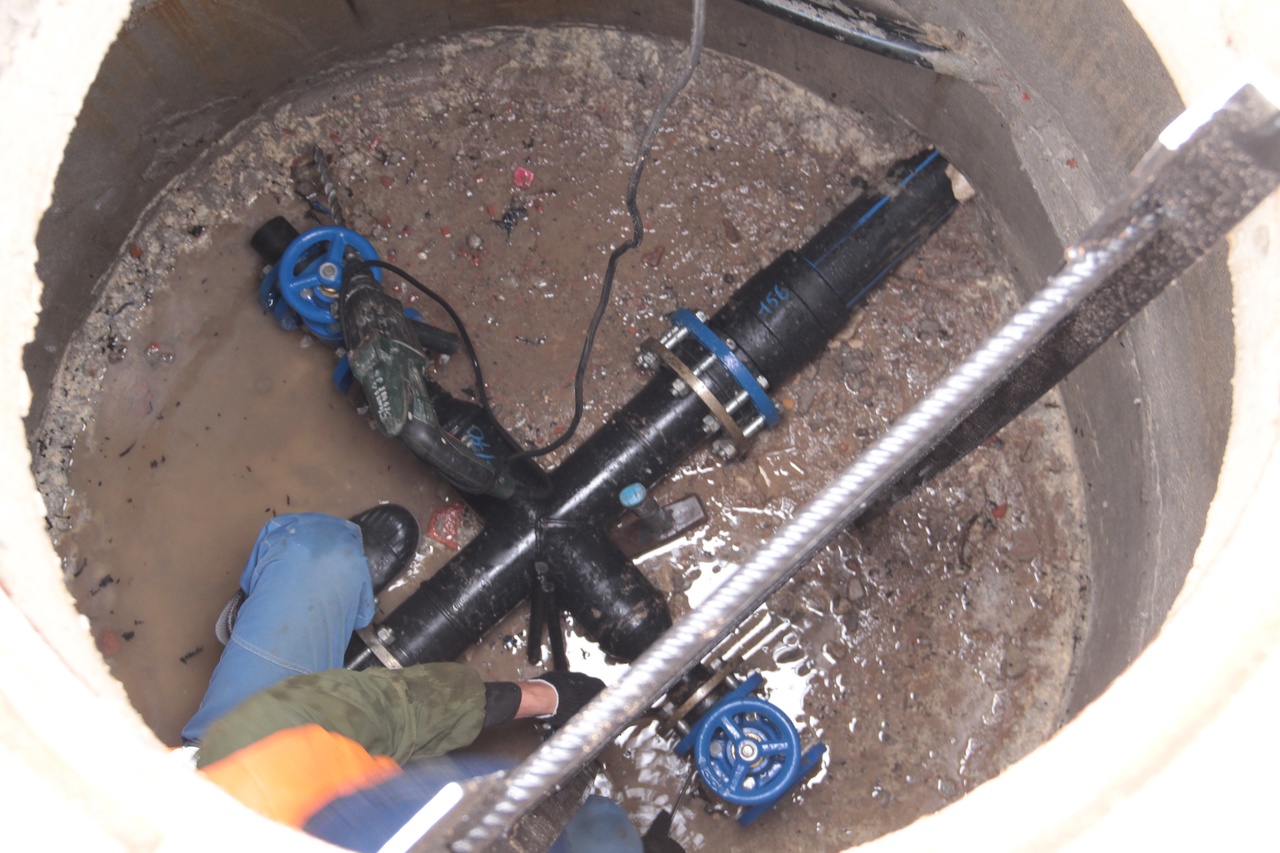Строительством занимались несколько бригад, поэтому дело шло с опережением графика. Также по окончании строительства провели испытания нового полиэтиленового – более безопасного и надёжного – водопровода, подключая его к общей сети поочерёдно, постепенно увеличивая нагрузку.