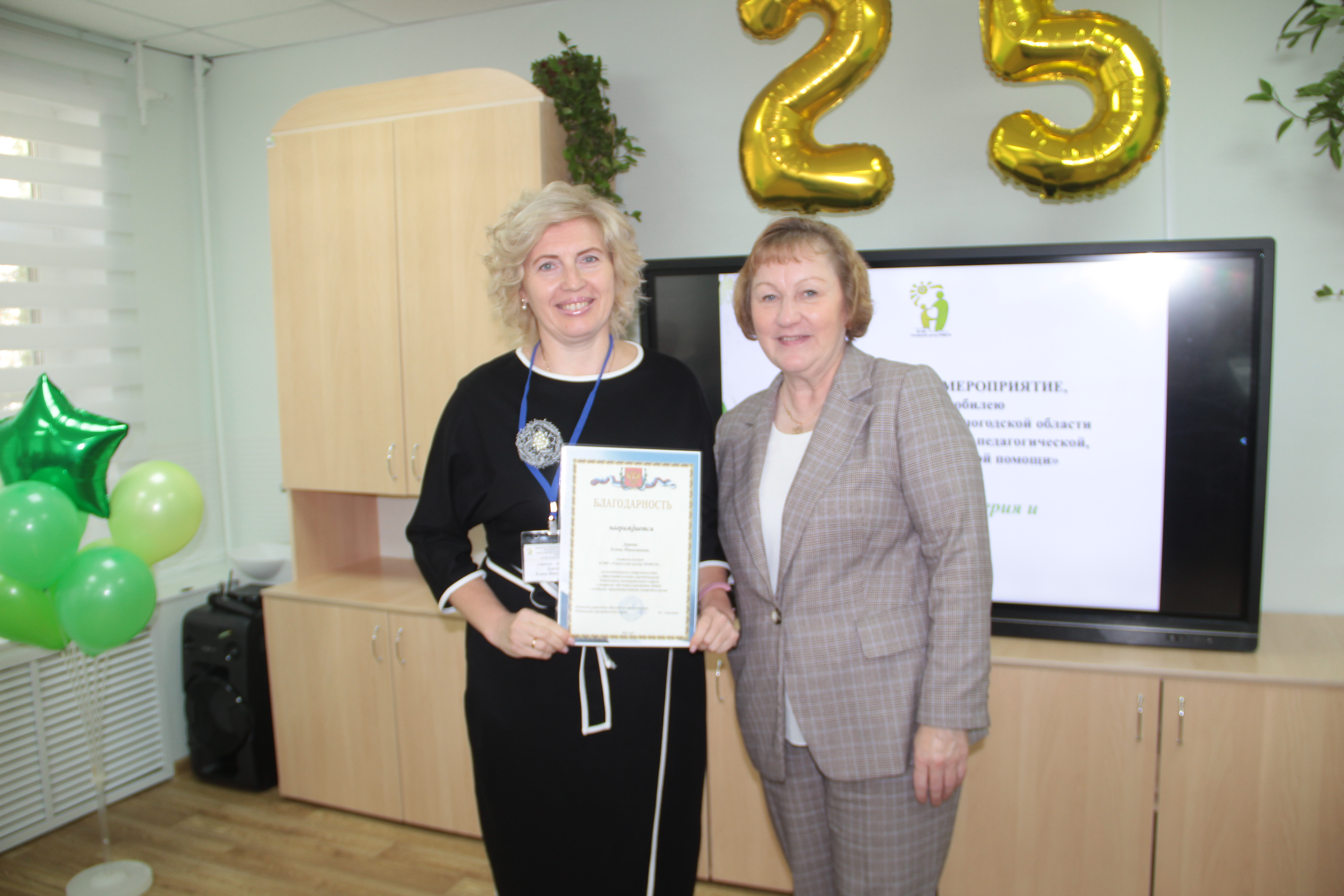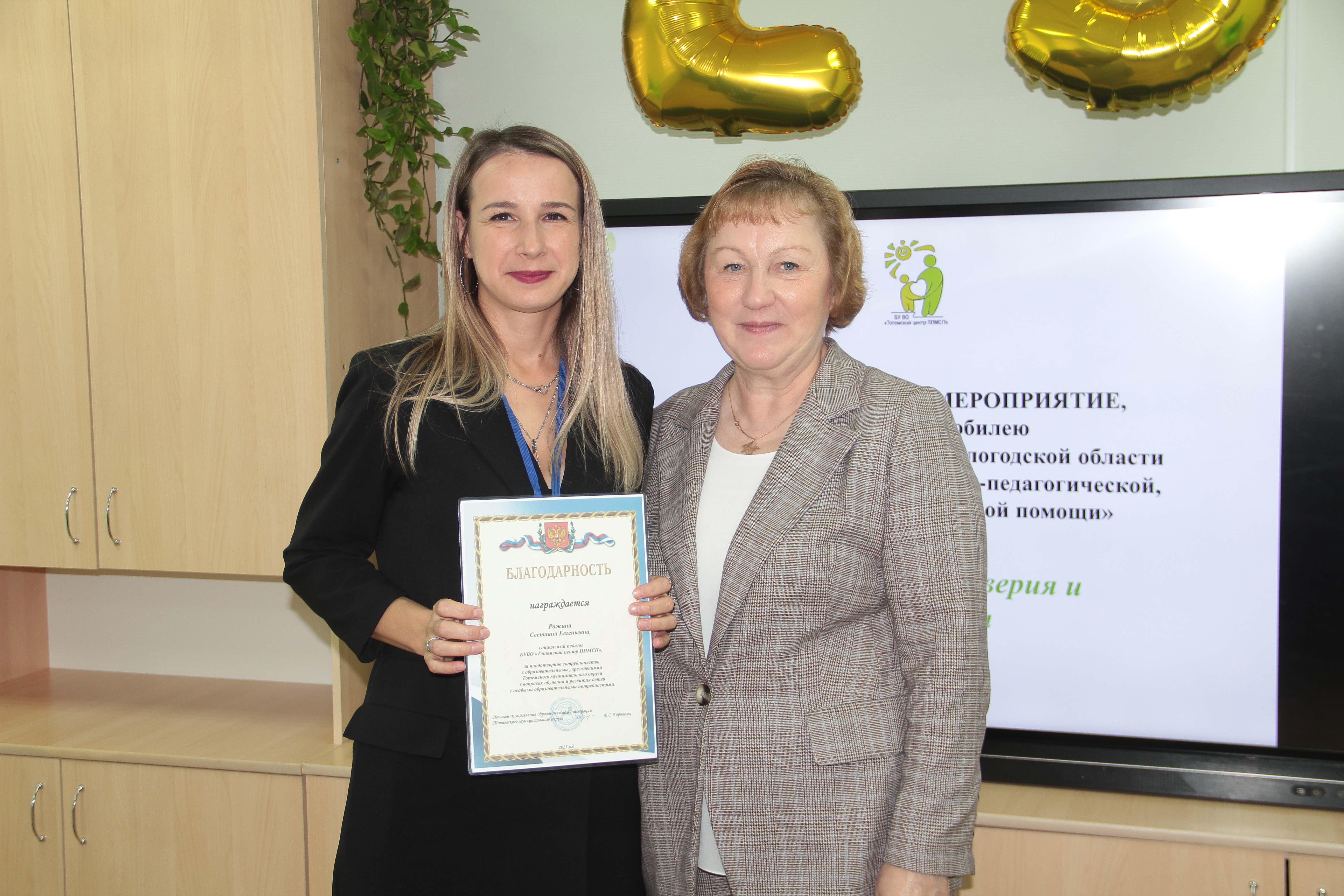Юбилейное торжество посетили первый заместитель министра образования области Лариса Святышева, начальник профильного управления администрации округа Валентина Горчагова, региональные коллеги, родители обучающихся, ветераны учреждения и действующие работники. Почётные гости поздравили коллектив с 25-летием, отметили их вклад в систему образования муниципалитета и Вологодчины, вручили Благодарственные письма учреждению и его работникам: учителю-логопеду Елене Дуровой, социальному педагогу Светлане Рожиной, педагогам-психологам Любови Кореповой и Анне Рябевой.