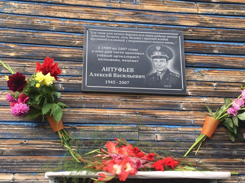 Открытие мемориала приурочили к 75-летию со дня рождения Алексея Антуфьева и 30-летию Дома-музея. Доску расположили на доме матери артиллериста - Манефы Алексеевны. Здесь Алексей Васильевич останавливался, когда приезжал на родину.