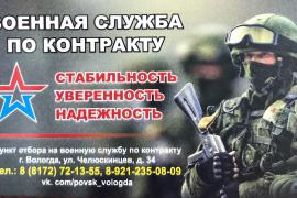 В Вологодской области продолжается набор добровольцев в Вооруженные силы РФ.