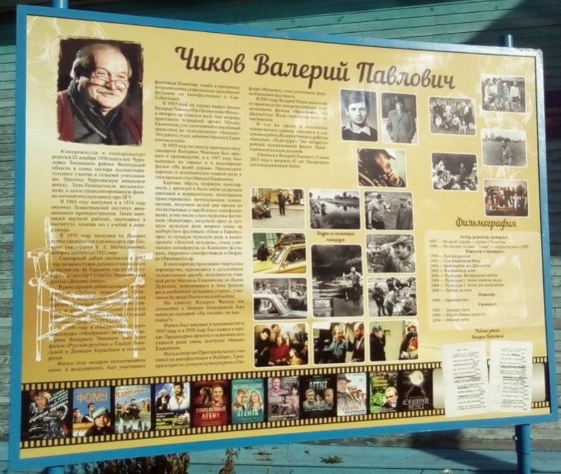 О знаменитом земляке Валерии Чикове многие наслышаны, но мало кто знаком с ним лично. Бывал он и в редакции газеты "Тотемские вести", «районка» опубликовала его сценарий пьесы «Два сапога всмятку или пенсионерам скидка», который затем поставил народный Театр на Красной Горке. О своей малой родине Валерий Павлович не забывал и в фильмах: там фигурируют названия городов, сёл и деревень Вологодчины, даже родная Чуриловка. Уроженец лесного посёлка показал в популярных комедиях жизнь простых людей из глубинки, ничем её не приукрашивая, за что и полюбился телезрителям всей страны.