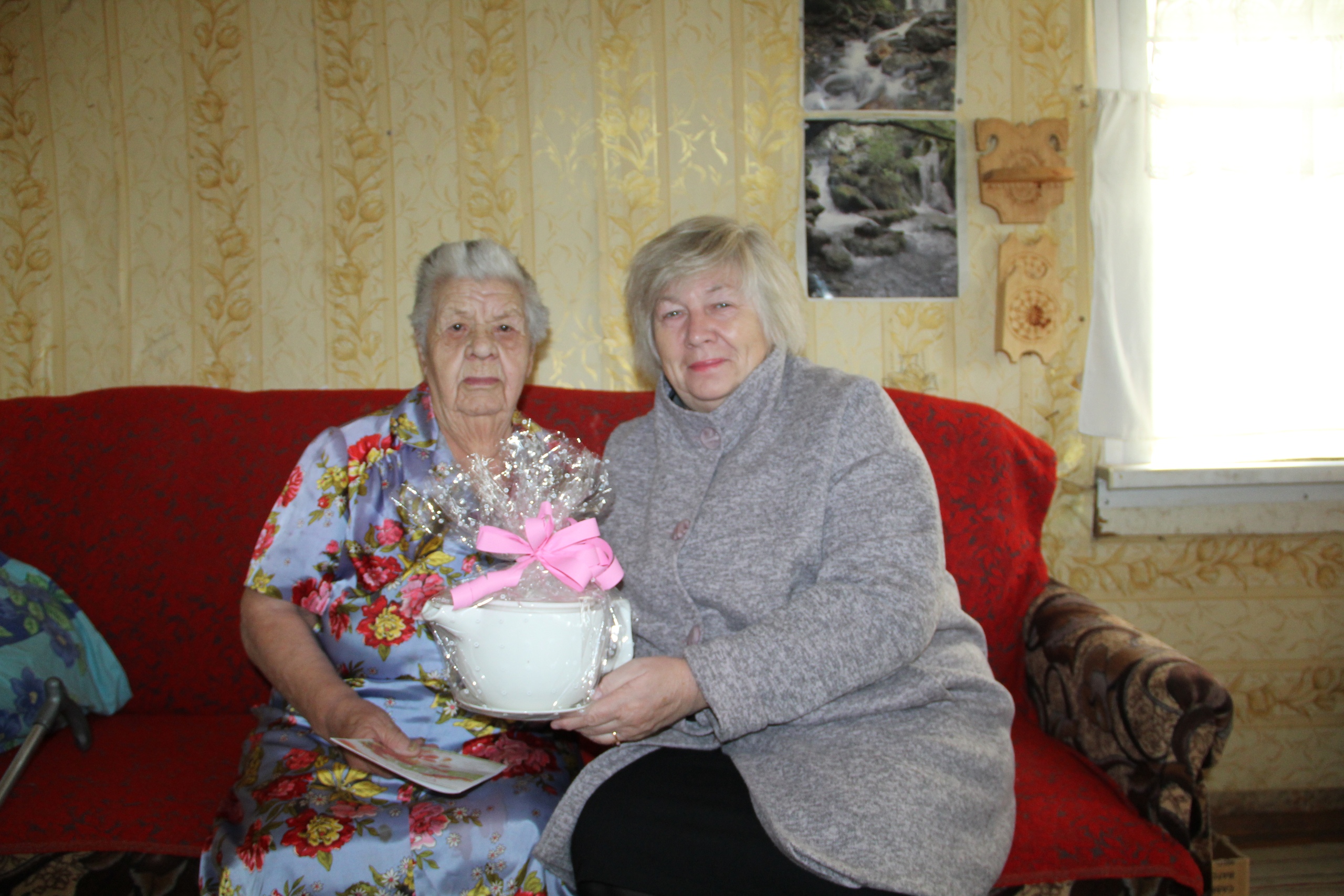 Глава СП Пятовское Татьяна Маринова и председатель совета ветеранов Татьяна Лысанова пообещали помочь, а также поздравили с такой важной датой, вручили подарки.